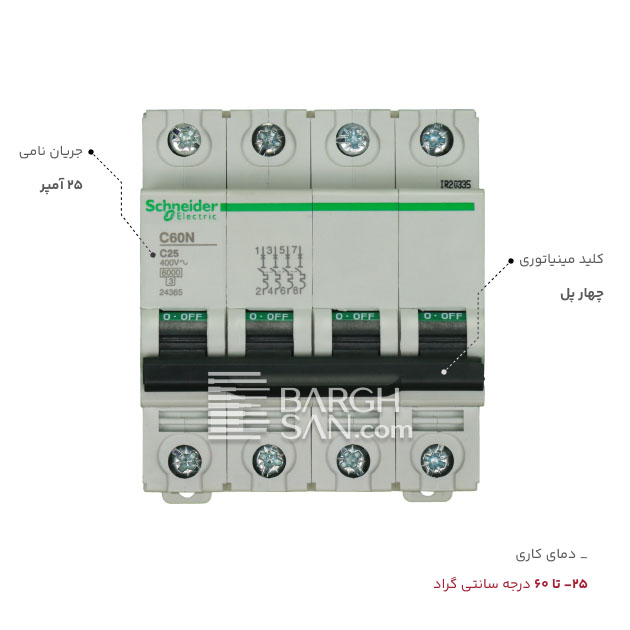 استانداردهای کلید مینیاتوری 25 آمپر Curve C اشنایدر چهار پل